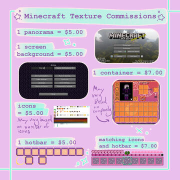 If you want to commission me, click the COMMISSION button to contact me. When requesting a commission that includes things from multiple sections (ex. a skin and a custom texture and etc), write "custom" as the commission type.
